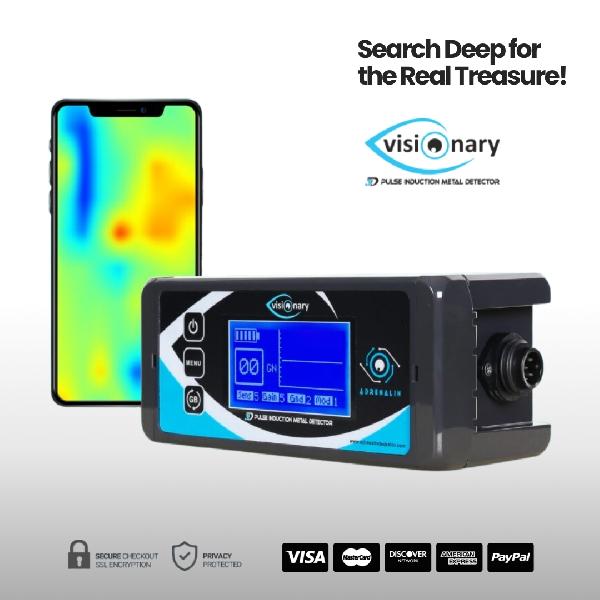 VISIONARY; Pulse Sistem Derin arama dedektörü, 3D görüntüleme sistemi ve Manyetometre (Pasif Elektromanyetik) sistem olarak 3 ayrı teknolojiyi tek bir üründe Barındıran, Ground Balans Sistemi teknolojisi ile üretilmiş Pulse (darbeli) metal dedektörü’dür. Ground Balancing System ve Balans sız olarak kullanımı aynı anda sunmaktadır. VISIONARY Haraketsiz (Nonmotion) Modu ile Diğer dedektörlerin inemediği derinliklerde araştırma ve tespitleri yapan, en DERİN algılama imkanı sunmaktadır.