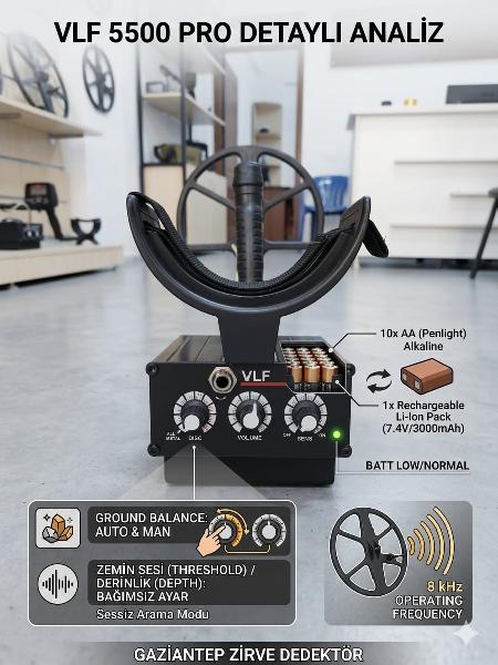 -VLF SINIFI SÜREKLİ ZEMİN SESLİ DERİN DEDEKTÖR İSTENİLDİĞİNDE -ZEMİN SESİ KAPATILARAKTA KULLANILIR.